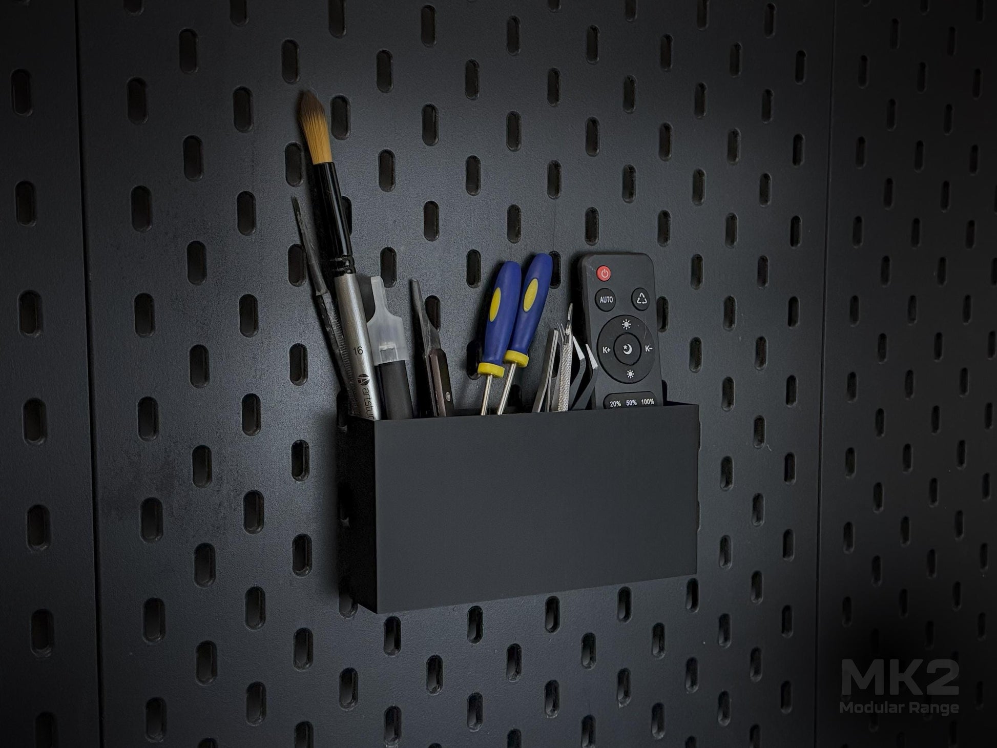 All MK2 products are designed to sit flush next to each other, making the most of your pegboard space. This holder lines up perfectly with other MK2 products such as the Citadel paint pot holder, shelves, and more — allowing you to create a fully customised, space-efficient storage system for your setup.