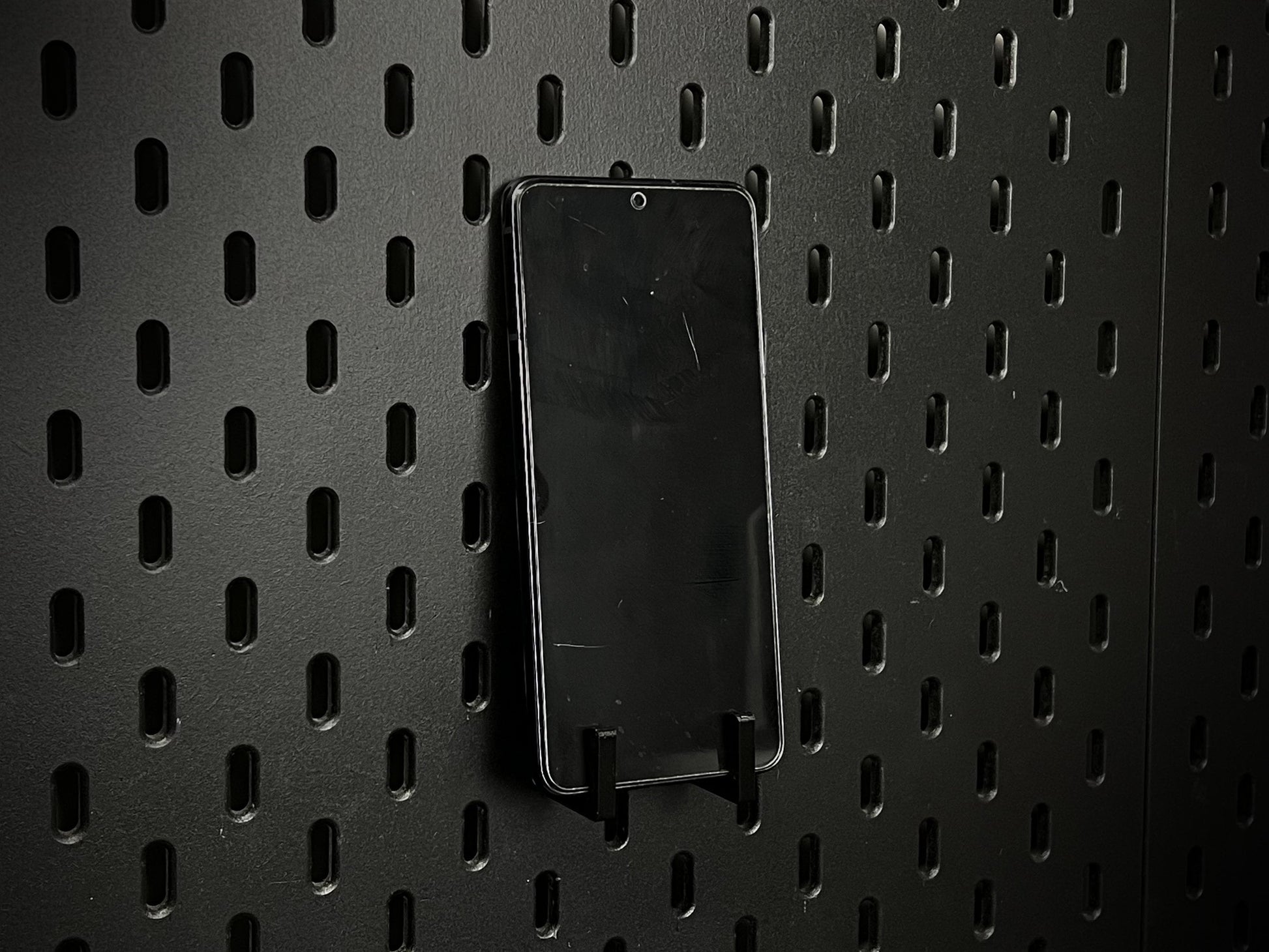 You’ll receive two identical brackets, which push into the pegboard and slide down to lock securely into place before adding your items.
