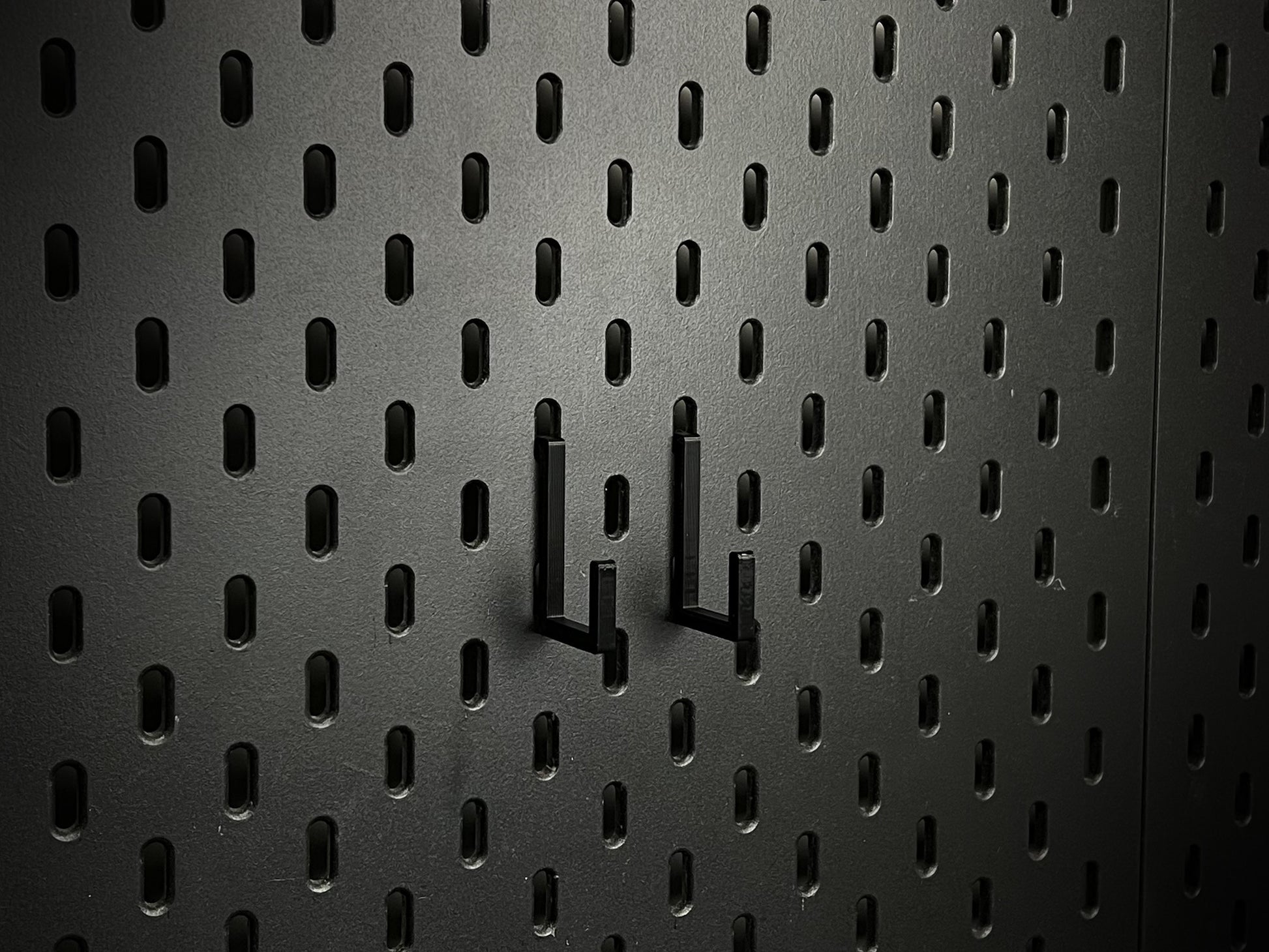 This multipurpose hook is designed to fit the IKEA SKÅDIS pegboard and comes with two brackets that can be positioned at any distance to hold a variety of items.